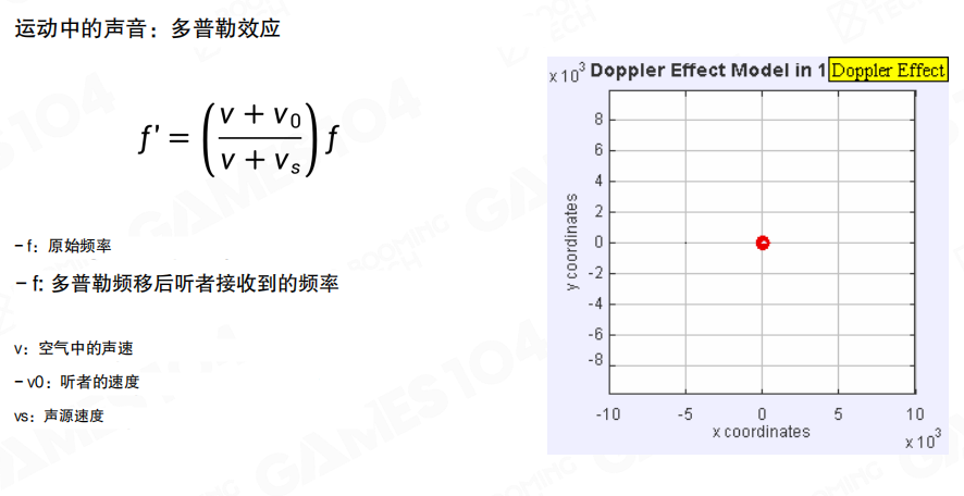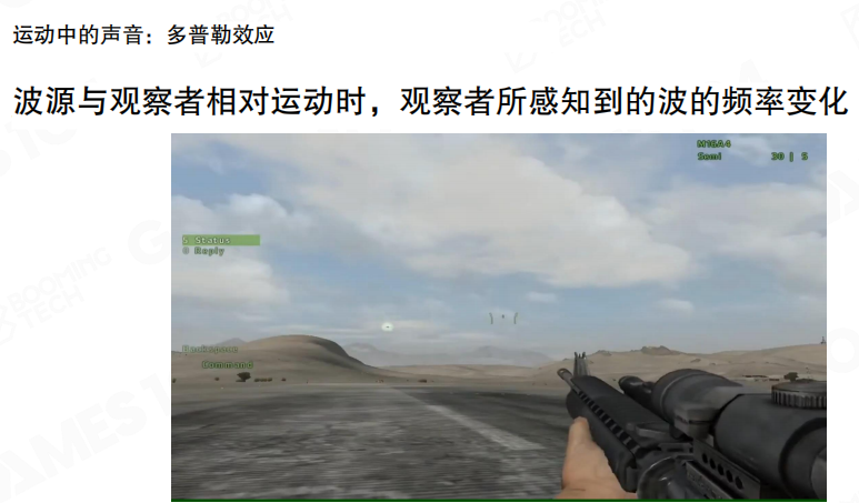 多普勒效应是游戏中对速度感知特别重要的效果,例如飞机飞过、车辆行驶、子弹掠过等场景,都会产生多普勒频移,增强打击感和速度感。