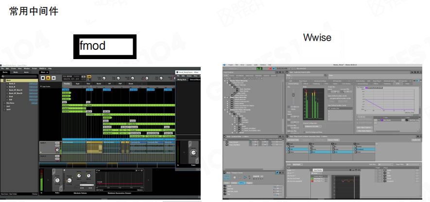 目前市面上常用的专业级声学引擎包括FMOD和Wwise等。这些引擎为声音设计师(Audio Designer)提供了符合其工作习惯的调音环境,让音频工程师专注于在3D世界中进行声音的组合渲染,而声音的生产和管理则交给声音设计师完成。