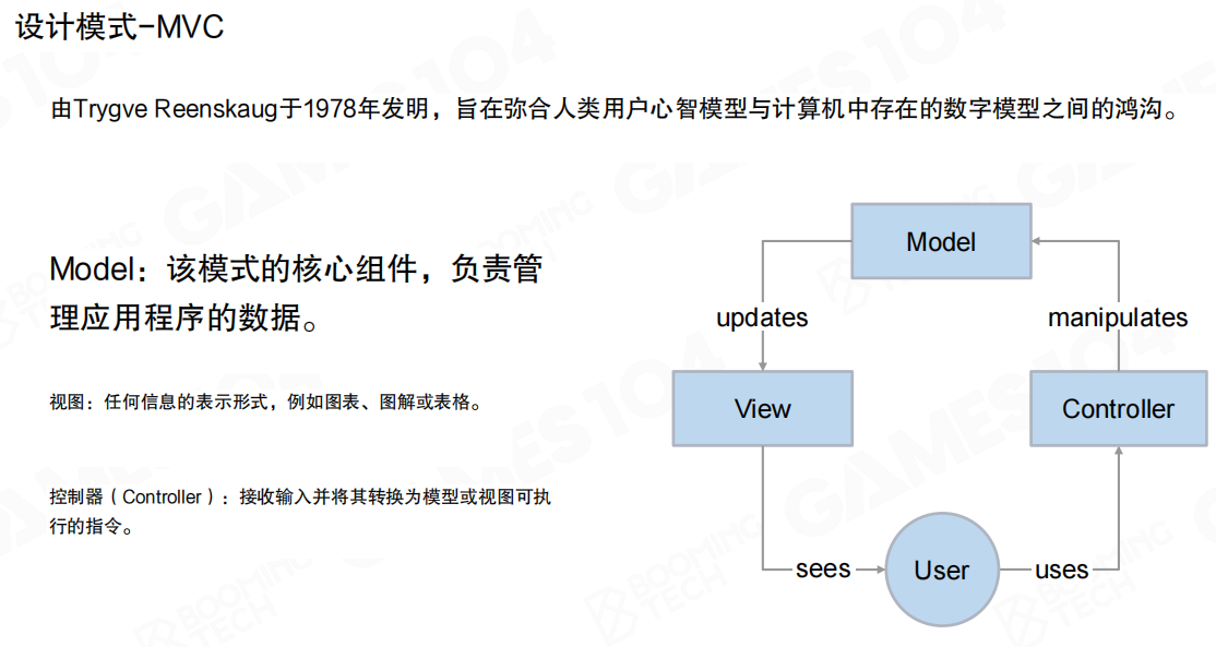 MVC(Model-View-Controller)是经典的人机交互设计模式,由Trygve Reenskaug于1978年发明,旨在弥合人类用户心智模型与计算机中存在的数字模型之间的鸿沟。