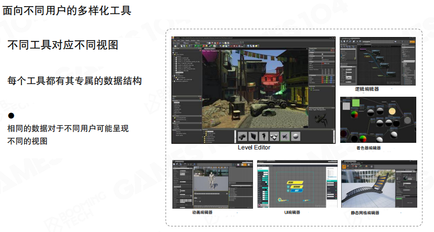 - 面向设计师:提供快速迭代工具、无需编程即可实现游戏逻辑的编辑器