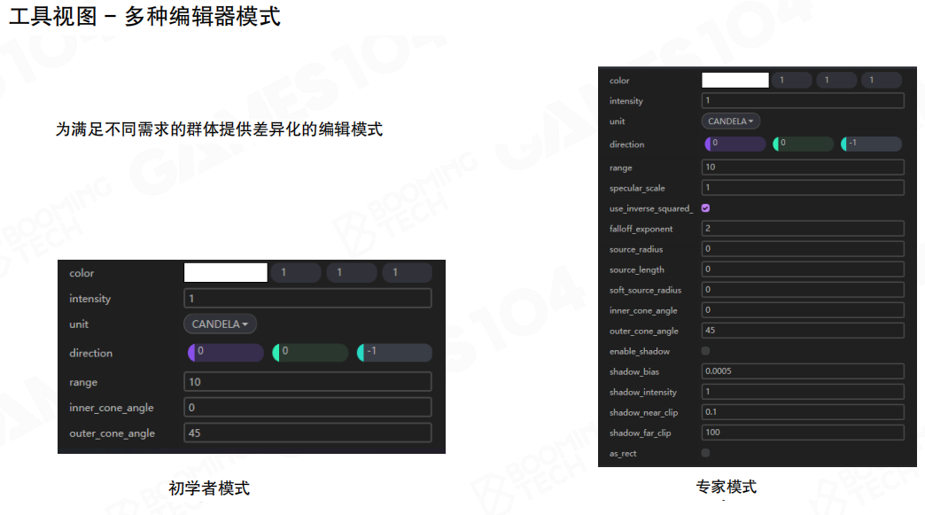 - 面向艺术家:提供可视化工具、所见即所得(WYSIWYG)的编辑体验
