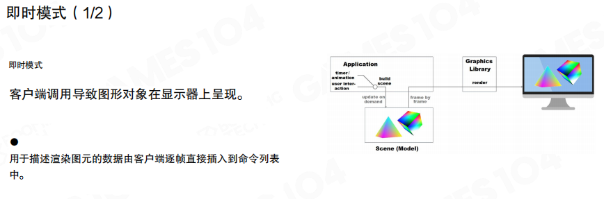 即时模式(Immediate Mode)是最简单的GUI实现方式。在即时模式中,客户端调用导致图形对象在显示器上呈现,用于描述渲染图元的数据由客户端逐帧直接插入到命令列表中。