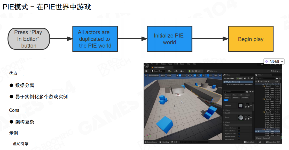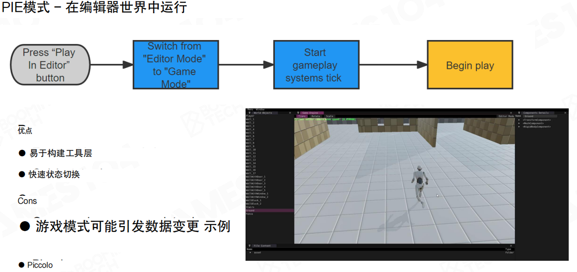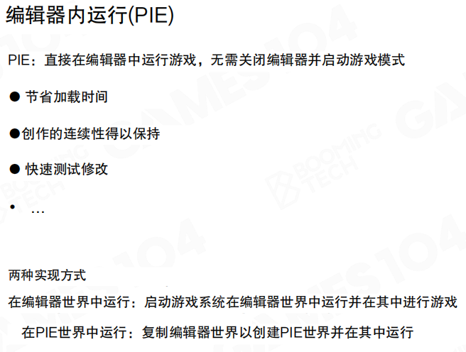 PIE 的目标是:无需退出编辑器,即可一键进入可游玩的游戏状态,从而节省加载时间、保持创作连续性,并快速验证修改。