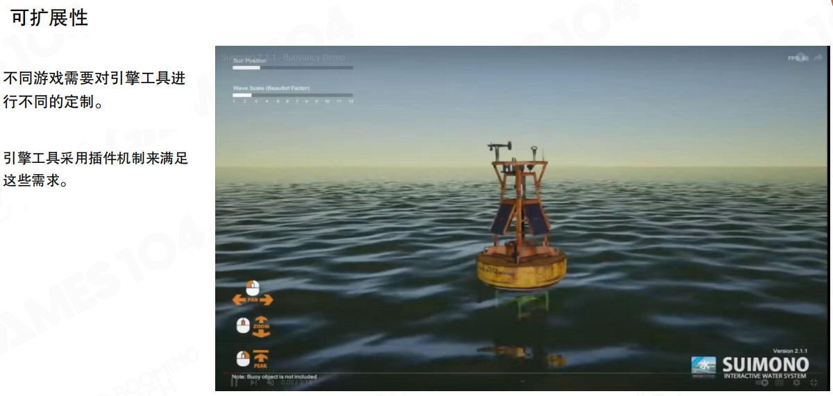 商业级引擎通常会提供良好的插件支持,方便用户开发并分享插件能力。下图展示了 Unreal 生态中常见的第三方插件形态:它为“水体交互”提供了可视化界面与参数调节能力,是典型的“引擎平台 + 第三方功能”组合。