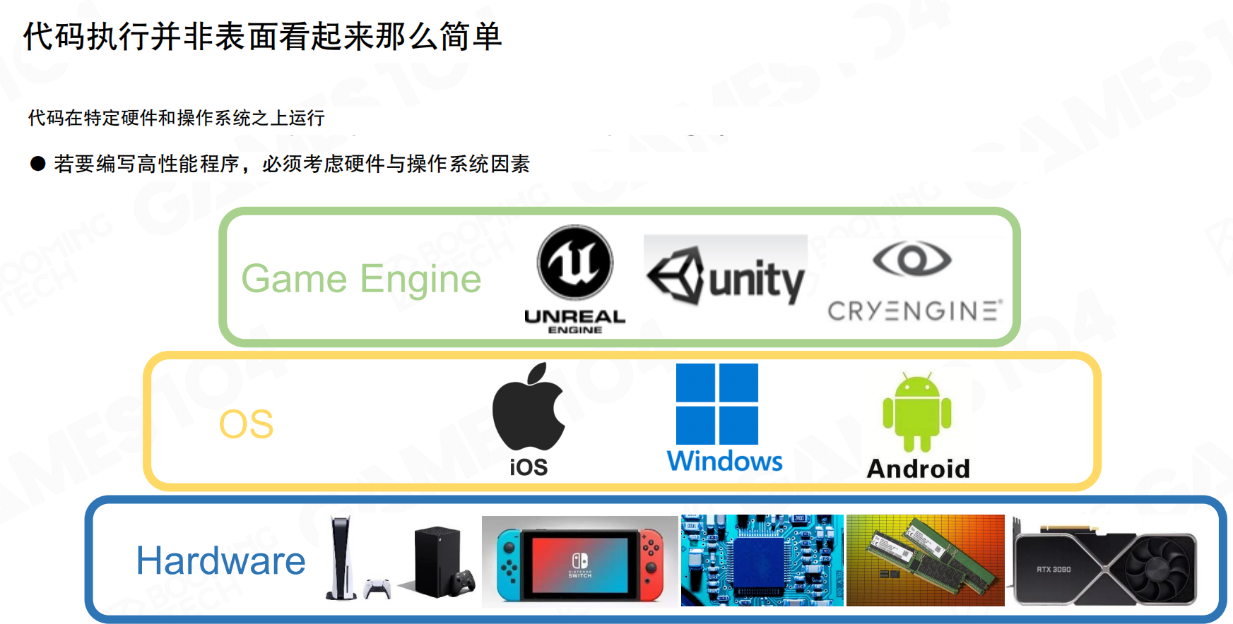 代码执行并非表面看起来那么简单。游戏引擎运行在操作系统之上,而操作系统又运行在特定硬件之上。要编写高性能程序,必须同时考虑硬件与操作系统因素。