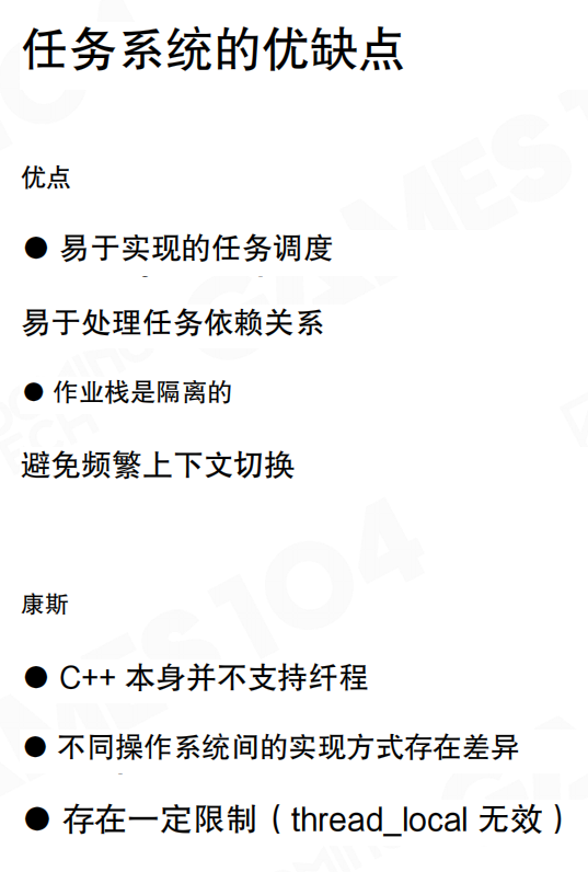 相比前述多线程方法,任务系统能更好地利用多核并避免线程切换,提升计算性能。它易于实现任务调度,易于处理任务依赖关系,作业栈隔离,避免频繁上下文切换。