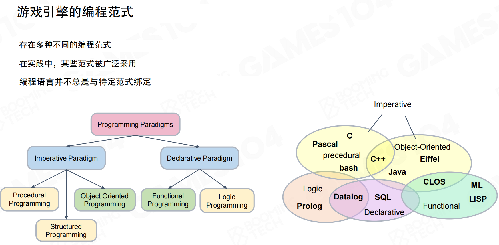 编程范式(Programming Paradigms)对程序性能有重要影响。游戏引擎中会使用多种编程范式实现不同功能。编程语言并不总是与特定范式绑定,实践中某些范式被广泛采用。