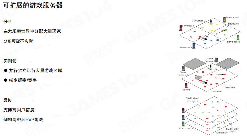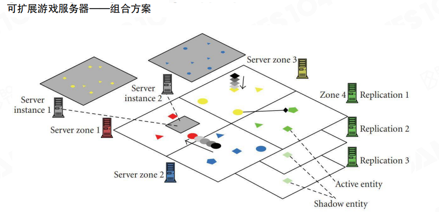 - 复制(Replication):把同一片世界做成多层/多份镜像,玩家被分配到不同层,必要时通过“影子实体”同步可见信息(常见于高密度 PvP 或主城分流)。