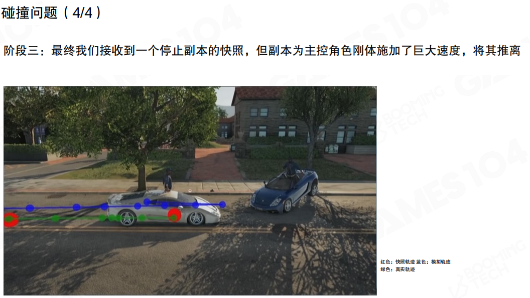 - 阶段二:复制体继续运行,但外推基于“最后一帧快照”,对碰撞后的真实减速/反弹没有感知。
