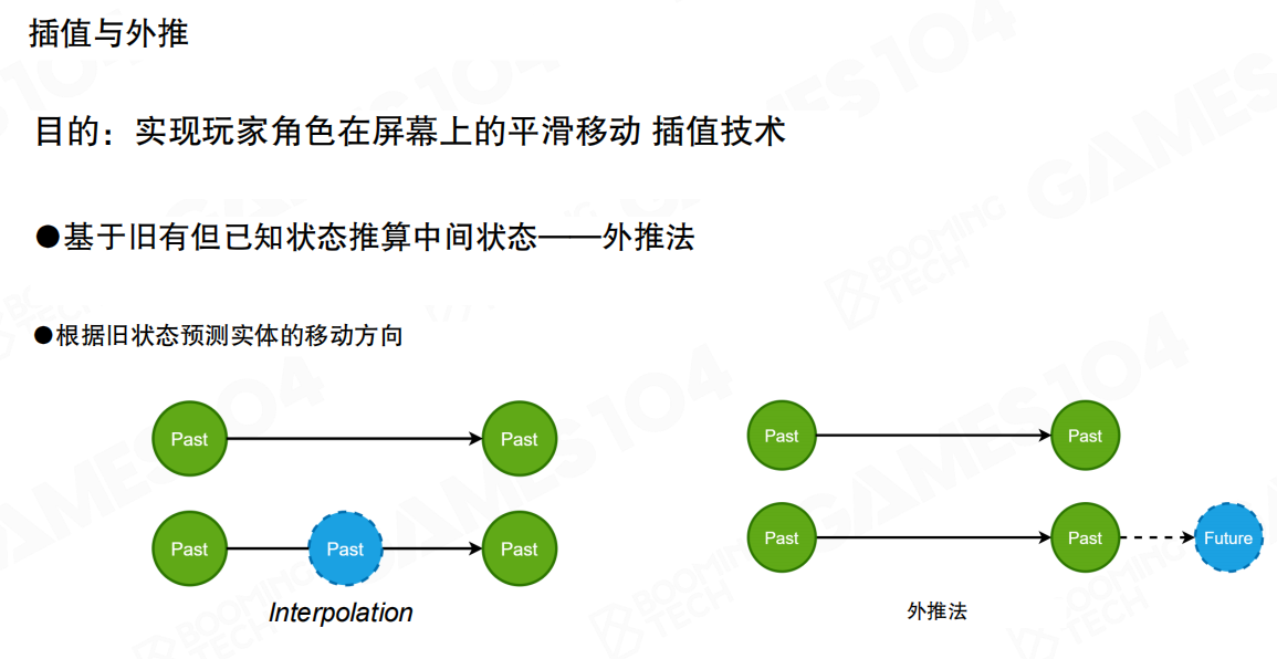 外推的思路更激进:既然我拿到的一定是“过去的状态”,那我就根据历史估计“此刻你应该在哪”。只要对延迟有基本估计,外推就能在视觉上追近真实位置。