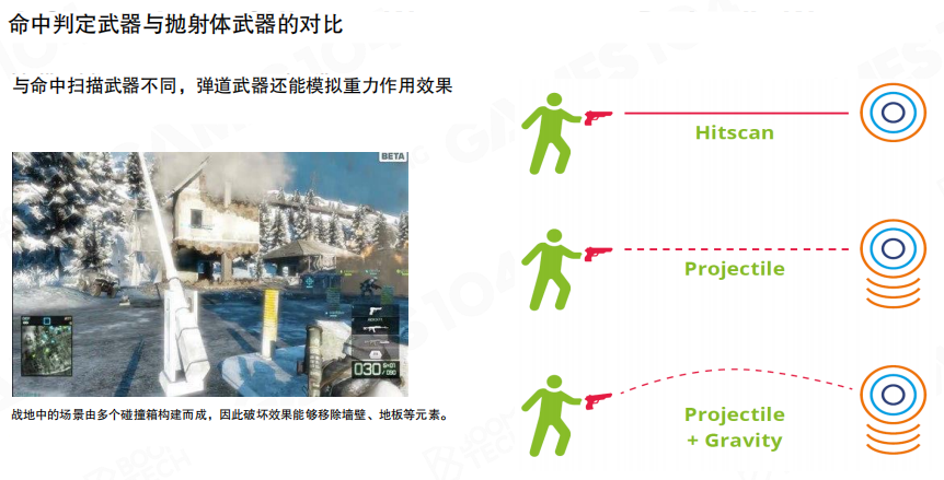 - 抛射体(Projectile):子弹有飞行时间,典型用于火箭弹、榴弹。