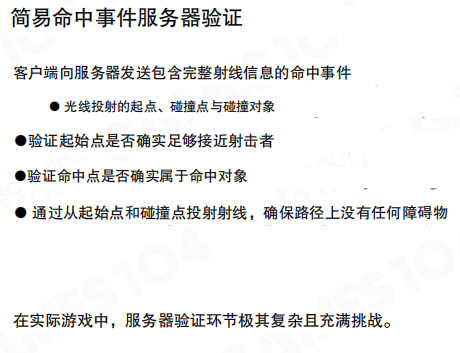 但“客户端说命中就命中”显然不安全。常见折中是:客户端先判定命中,服务器再做轻量验证(verification),例如检查射击起点是否合理、命中点是否可信、射线是否穿墙等。