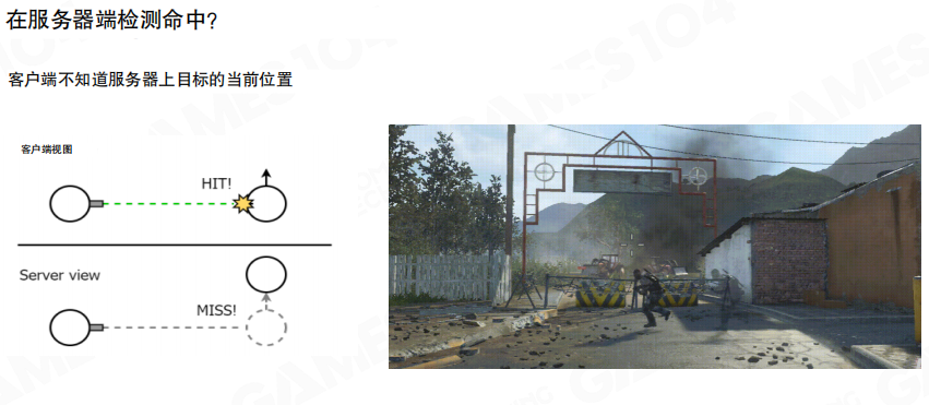 但它的第一道坎是:射击者并不知道服务器上“此刻”的目标位置。若直接用服务器的当前状态做检测,就会出现射击者明明瞄准到了却被判定未命中——特别是目标在移动、或在掩体边缘时。