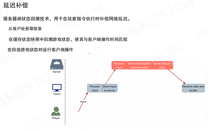 这要求服务器保存一段时间的历史状态快照(或者至少保存关键对象的历史位置),以便在收到射击事件时执行回溯计算。