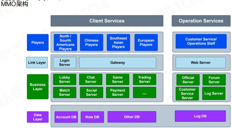 到了现代,大型多人在线游戏的形态更丰富:RPG 之外,FPS、RTS 等也能具备”海量在线”的规模属性。玩法的多样化,直接带来系统层的复杂化。