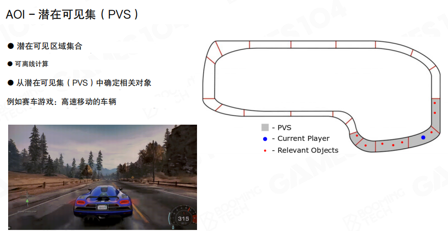 赛车一类场景就很典型:赛道拓扑明确,玩家高速度移动但可见范围相对可控,PVS 可以有效减少同步对象规模。