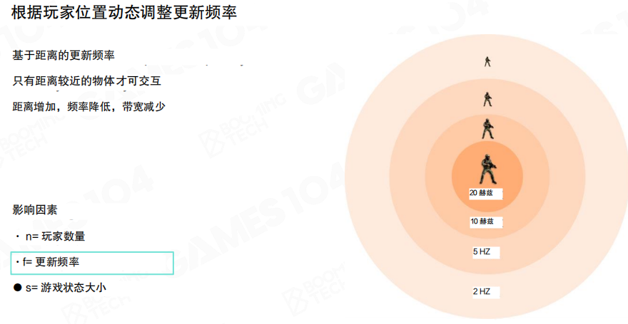 最后一类常用策略是调整 更新频率:距离玩家越近的对象,更新越频繁;越远的对象,更新越稀疏。这样可以在不显著影响感知的前提下,降低带宽占用。