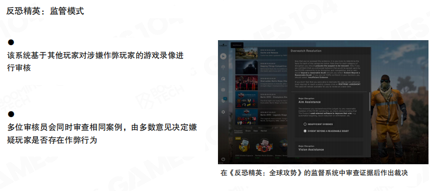 当自动化检测无法给出足够置信度时,引入人工审核是常见补充。例如图中展示的”监管模式”:基于录像证据,由多位审核者共同裁决,降低误判带来的伤害。
