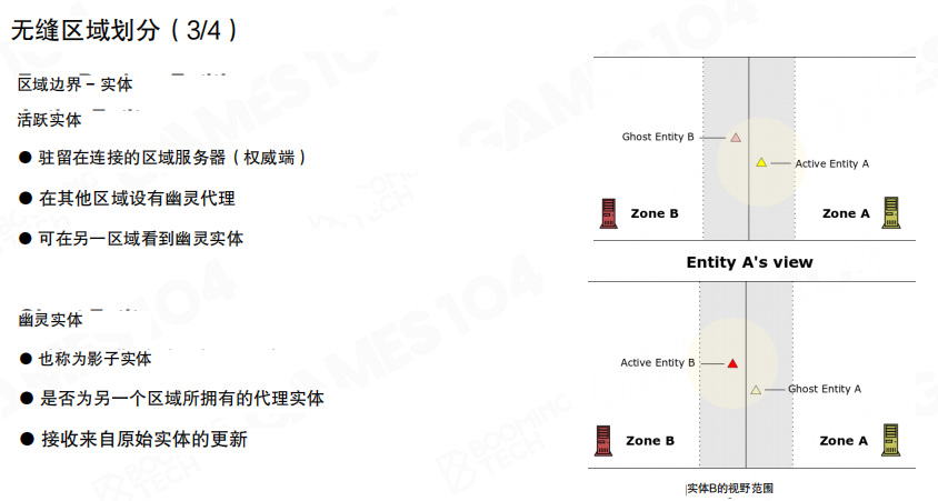 - 幽灵实体(Ghost):在相邻 Zone 中的代理副本,用于可见与基础交互展示;它接收来自活跃实体的状态更新。
