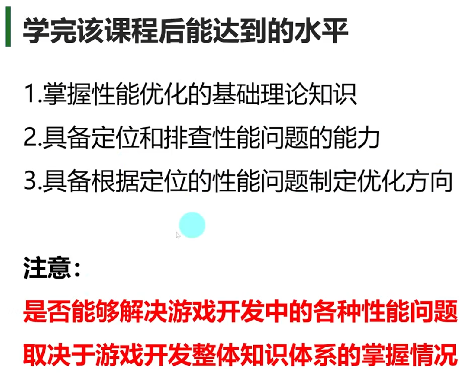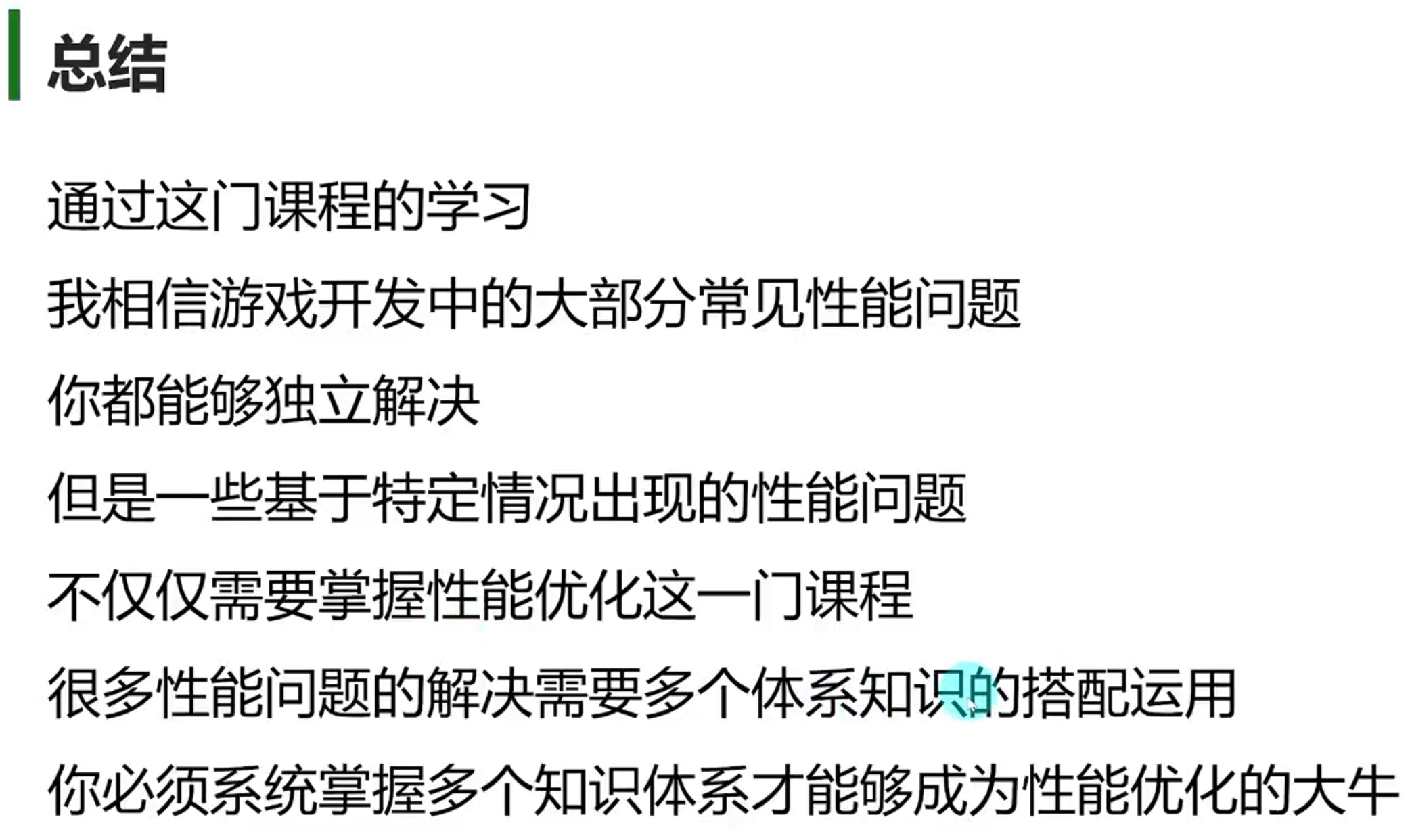 1.Unity性能优化基础知识概述 性能优化 > Unity性能优化 > Unity性能优化基础知识 性能优化 Unity性能优化 Unity性能优化基础知识 发布时间 : 2026-01-12 10:05 字数:32 阅读 : 评论: 1.概述1.1 知识点主要讲解内容必备知识主要学习内容学完后的水平总结 1.概述 1.1 知识点 主要讲解内容 必备知识 主要学习内容 学完后的水平 总结 转载请注明来源,欢迎对文章中的引用来源进行考证,欢迎指出任何有错误或不够清晰的表达。可以在下面评论区评论,也可以邮件至 785293209@qq.com