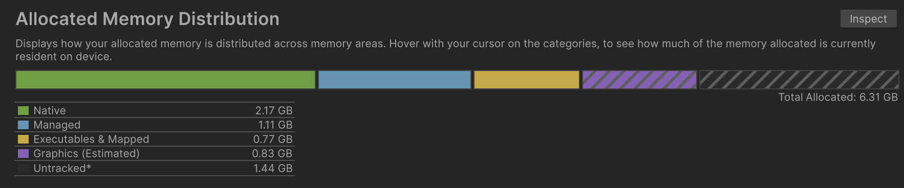 补充说明:在计算 Untracked 内存的 Allocated Size(已分配大小) 时,还会从中减去 Graphics(Estimated) 图形内存的大小,因为: