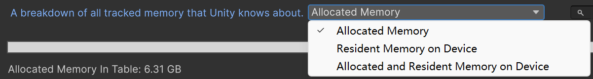 - Memory Profiler 会分析整个 Unity 进程中已分配和常驻(resident)的内存区域