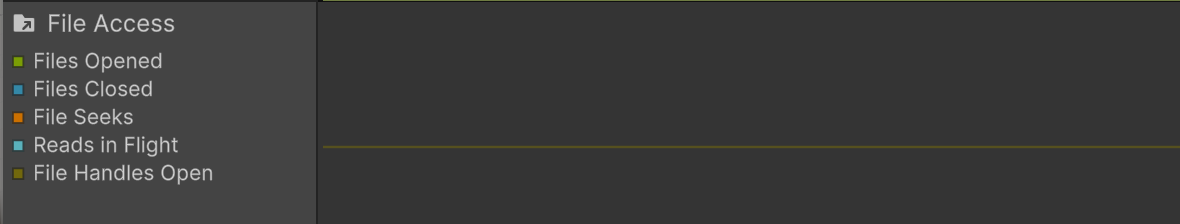 - Reads in Flight:正在进行中的文件读取操作数量,比如异步读取纹理、音频、AssetBundle 过程中。这个值过高说明系统在并发读很多文件,可能会造成带宽瓶颈