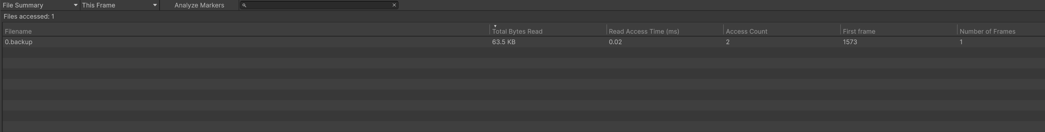 - Files Opened(文件开启):游戏在当前帧或某时间段内打开的文件数量,比如加载纹理、音频、场景文件等会触发打开文件操作。频繁打开文件可能意味着资源未预加载、重复打开,可能会导致性能问题