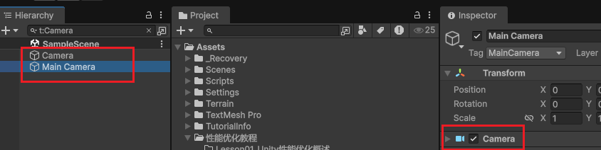 例如本应只挂在一个对象上的脚本被误挂到多个对象上,就会导致同一逻辑被多次执行,带来不必要的性能消耗。因此要结合 Hierarchy 搜索(t:脚本名)和 Profiler 的调用次数、耗时,排查是否因挂载失误导致性能问题。