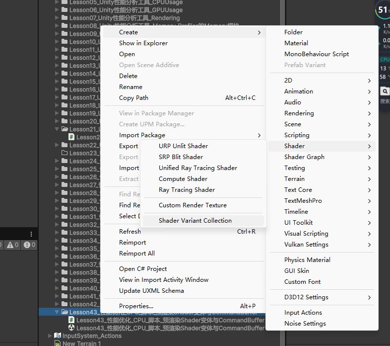 //1.在 Project 窗口 右键 → Create → Shader → Shader Variant Collection(着色器变体集合)