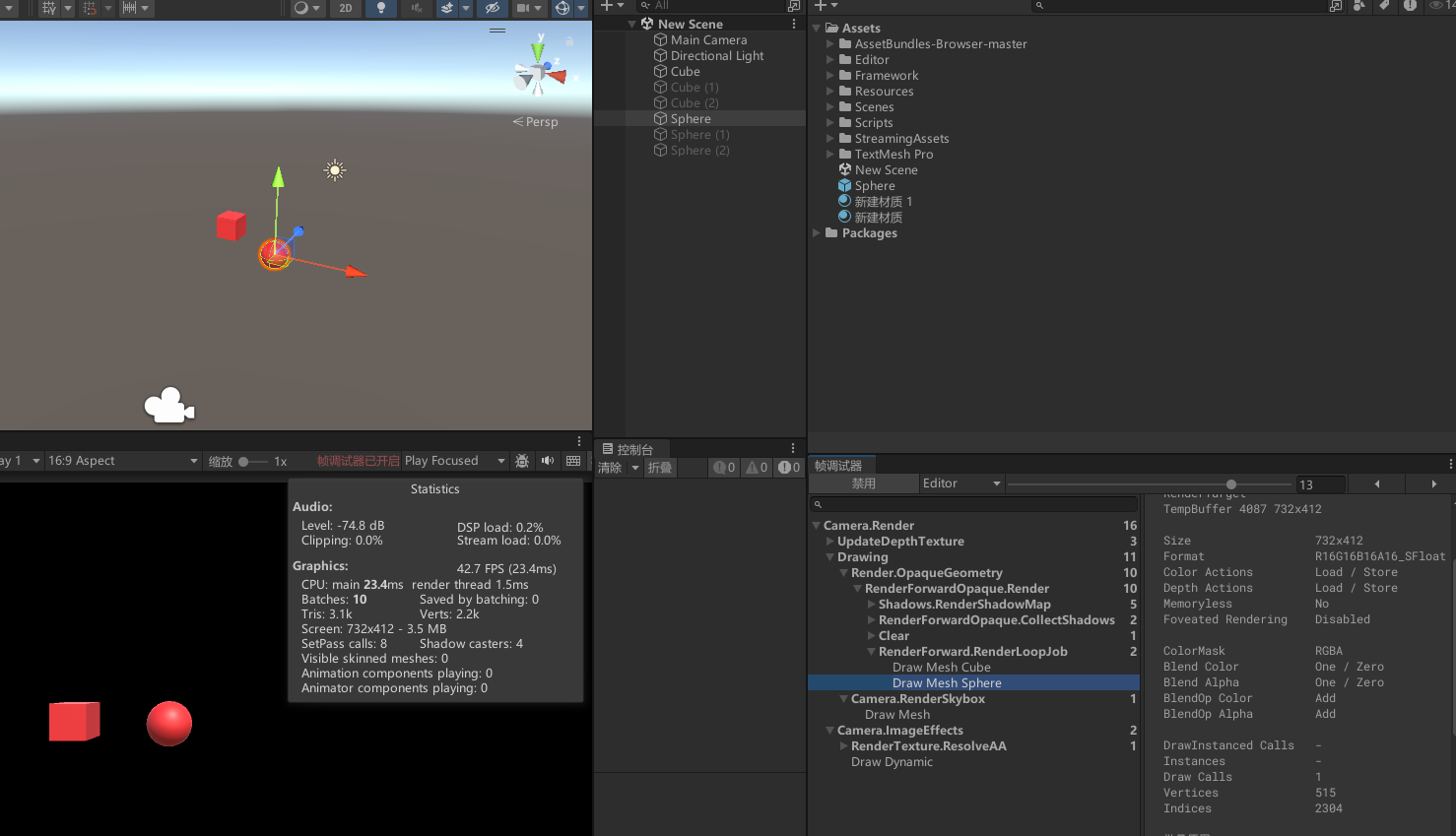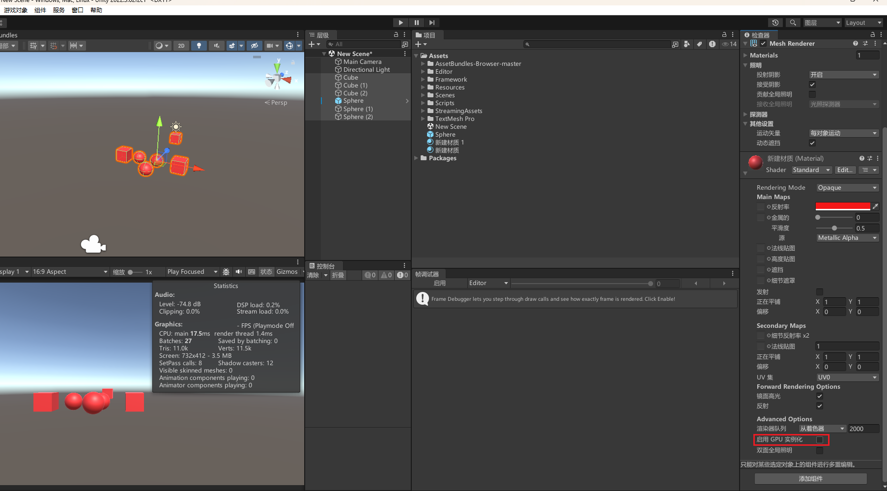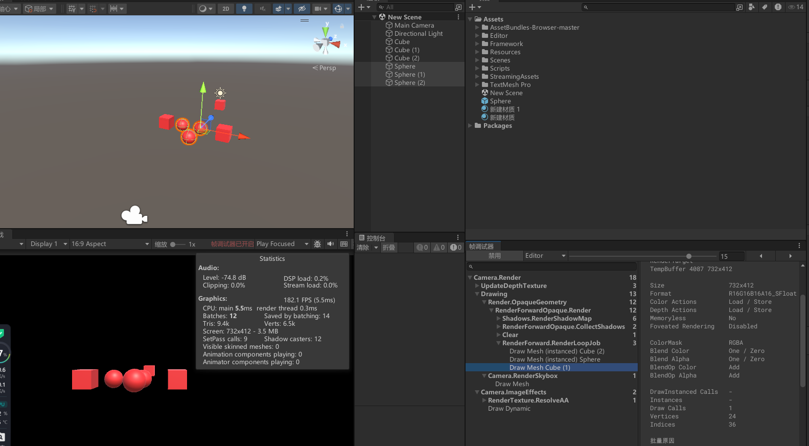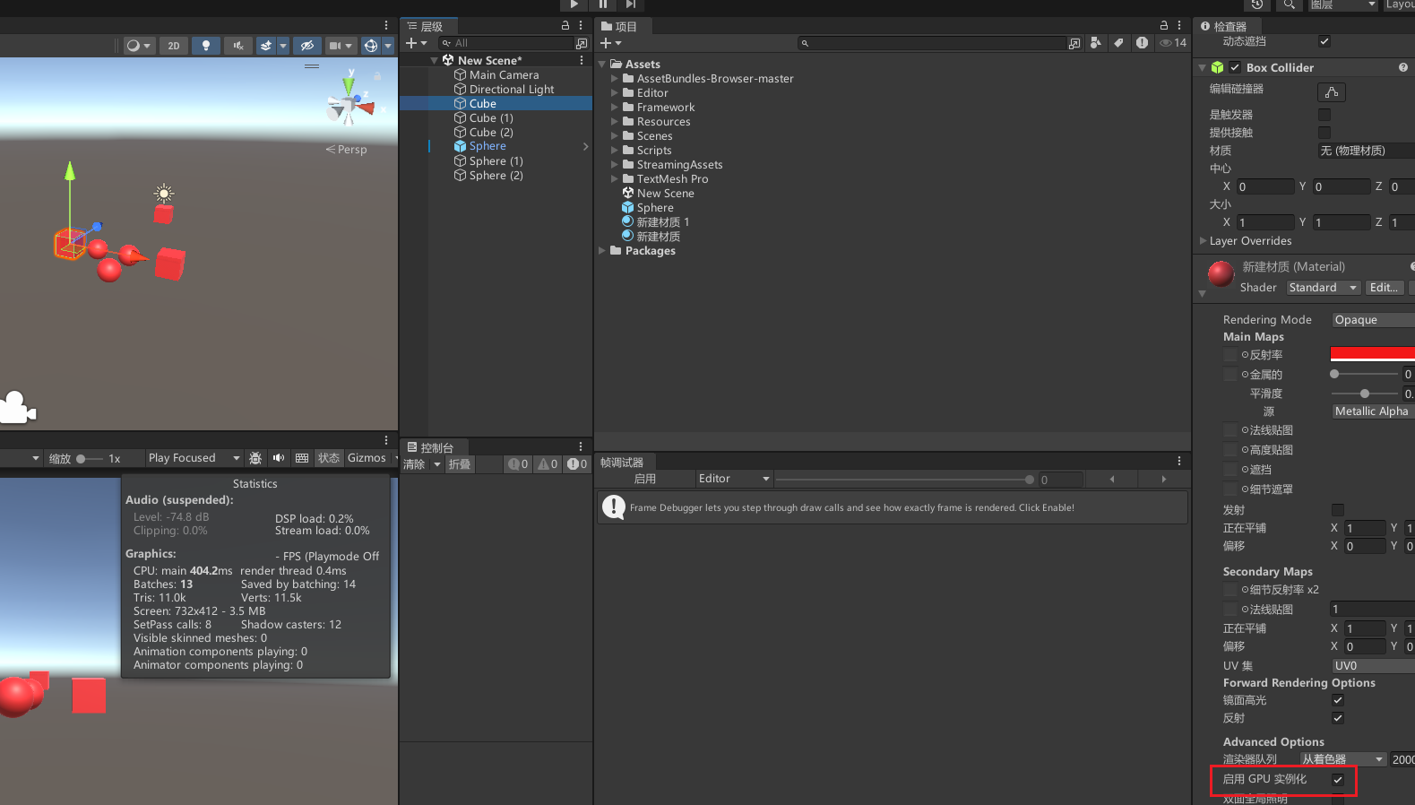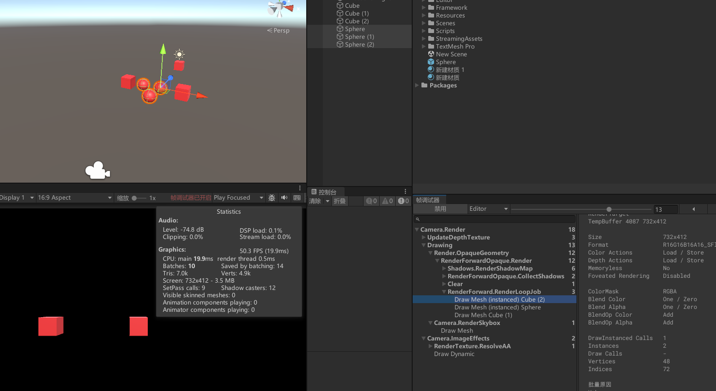 - 对 Cube 和 Sphere 关闭静态批处理。