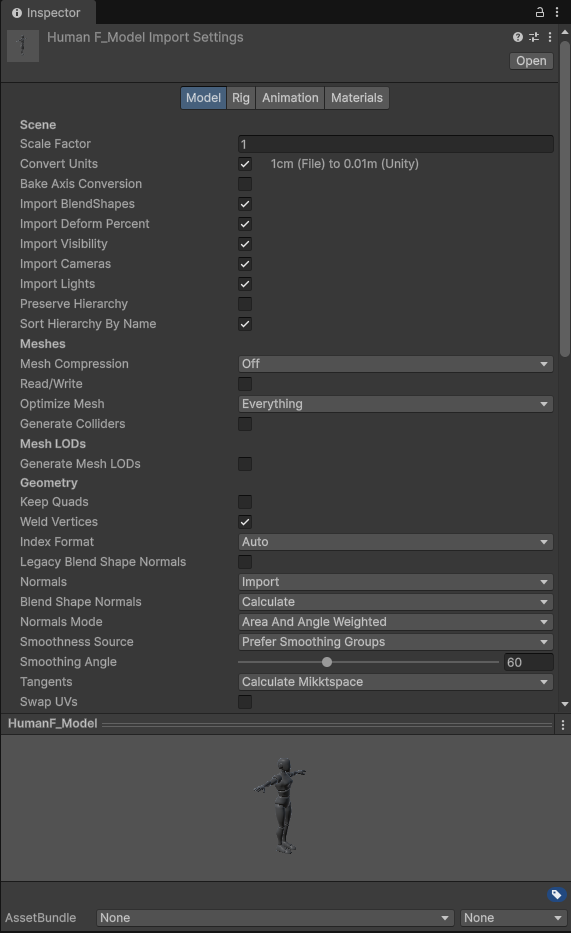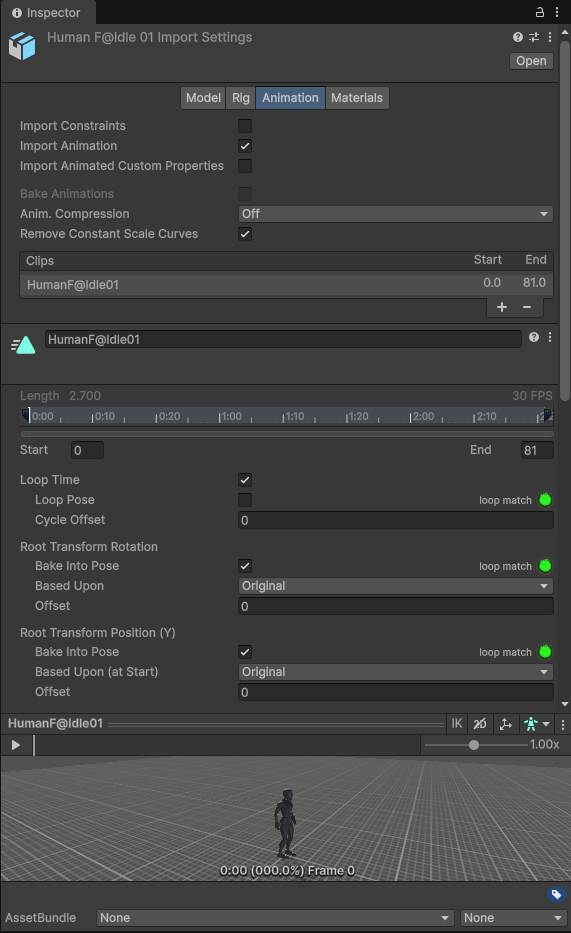 | Humanoid | 人形动画,支持重定向,占用更多内存 | 仅人形角色 |