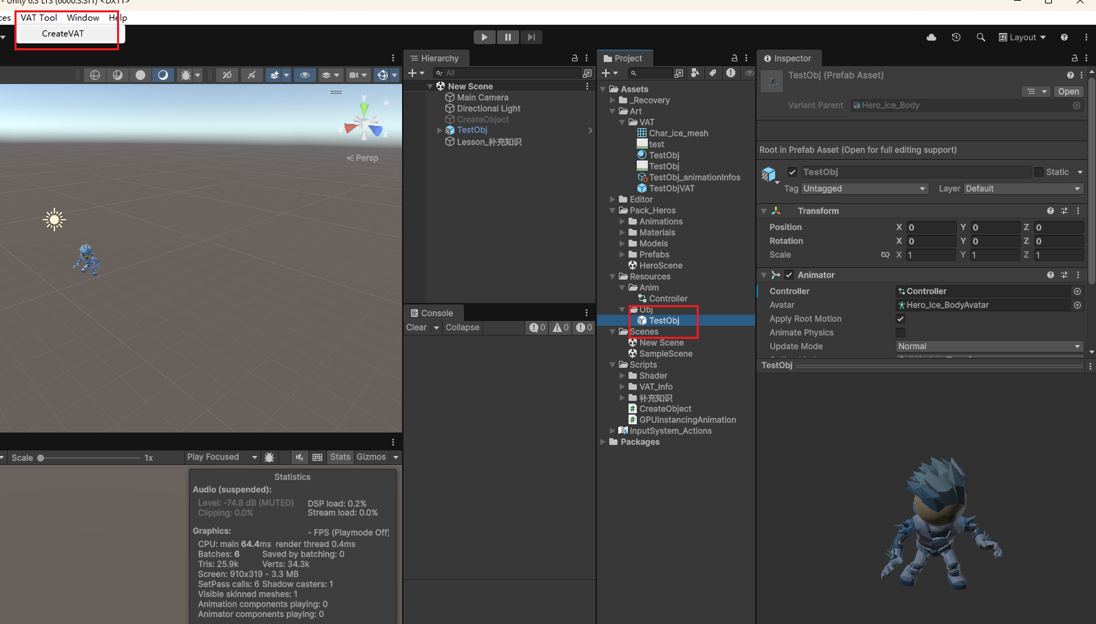 选中 TestObj(或你的目标),菜单 VAT Tool → CreateVAT,生成后可用 SO 与 VAT 做后续逻辑。