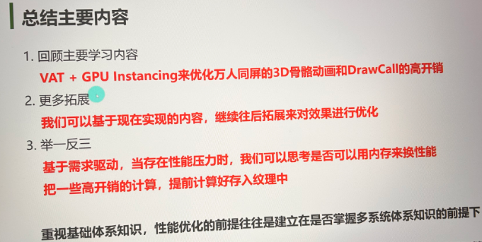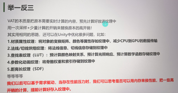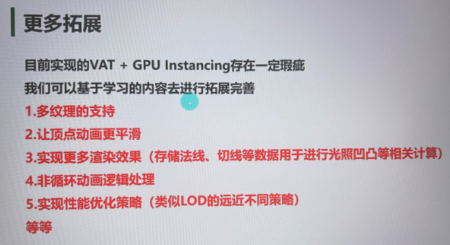 - 课文明确:骨骼蒙皮那条渲染路径与「海量实例 + GPU Instancing」的常见用法不匹配,目标是让顶点位置完全由 VAT 在着色器里驱动,CPU 不再逐实例更新骨骼。