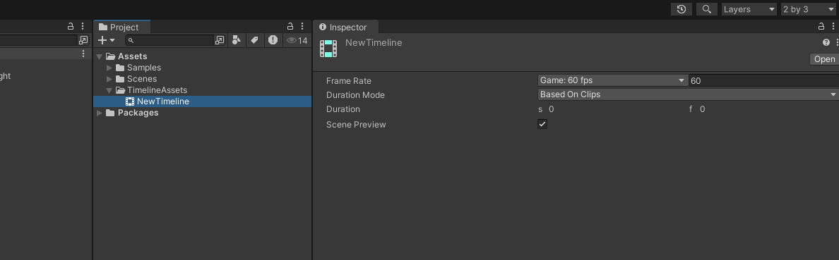 Timeline 资源文件的后缀是 .playable。创建入口主要有两种:Project 视图创建、Timeline 窗口创建。
