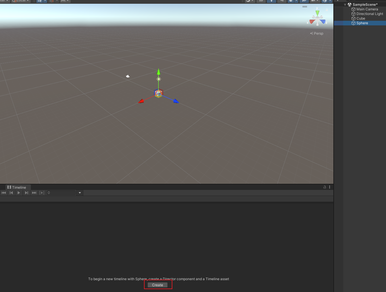 - 在 Hierarchy 里选中一个对象后,Timeline 窗口出现 Create