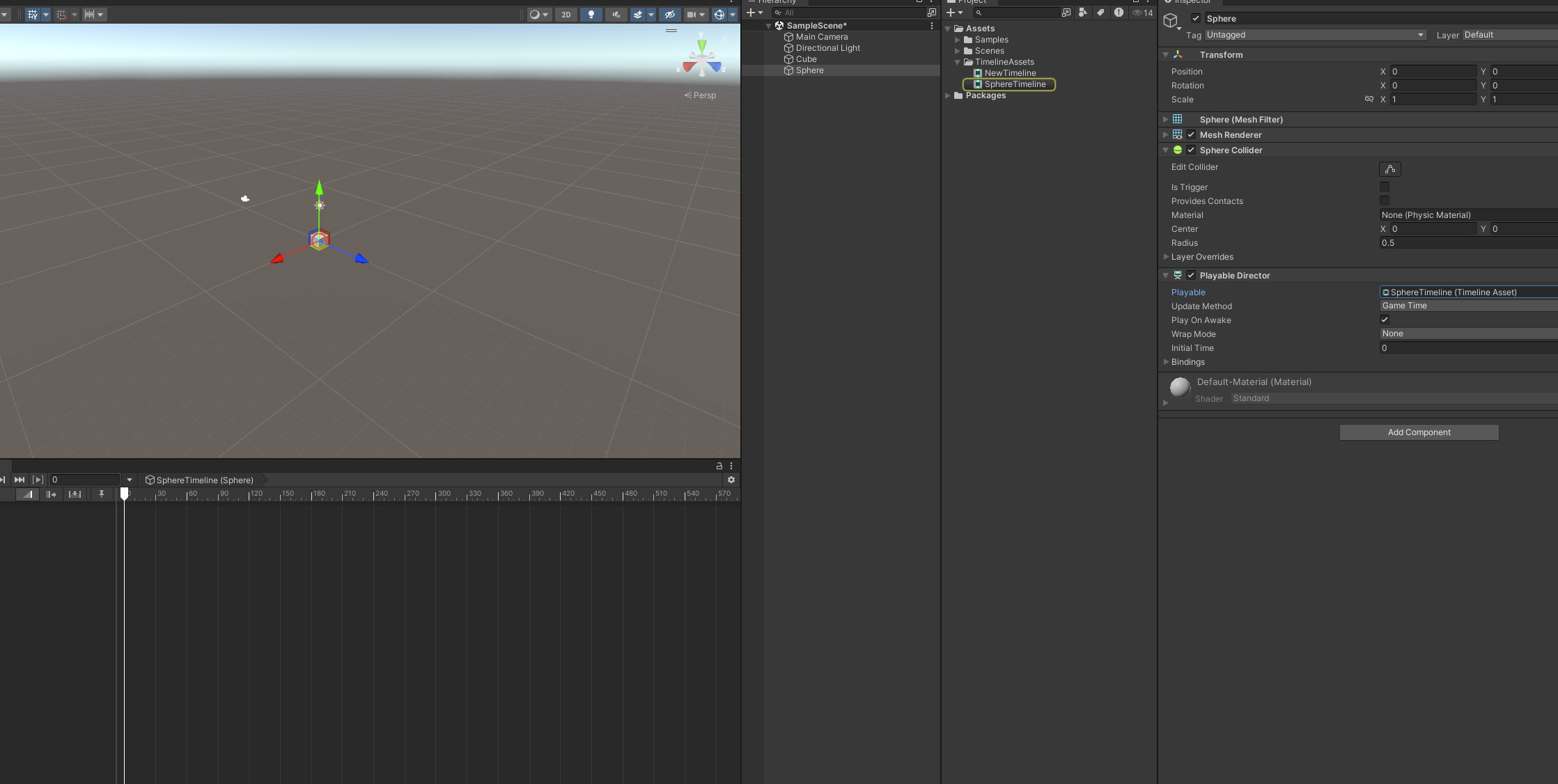 注意:这种方式只创建了 TimelineAsset,默认没有任何对象引用它;要播放需要手动在场景对象上添加 PlayableDirector,并把 .playable 拖到 Playable Director -> Playable 槽位。