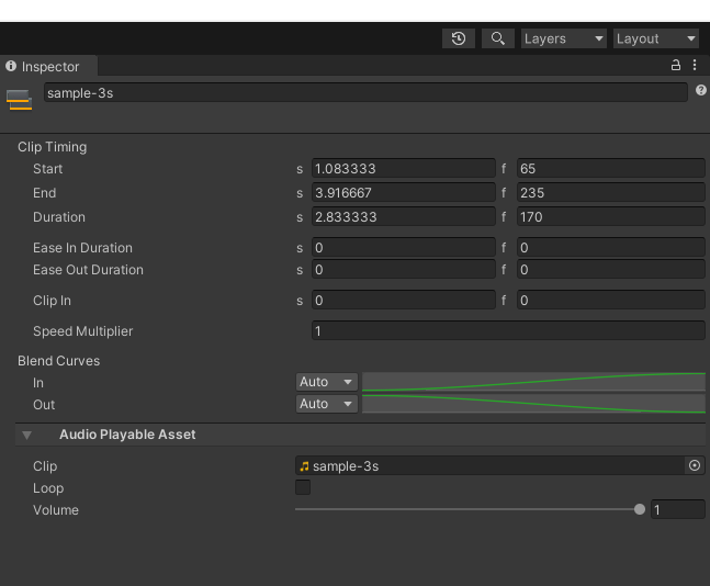 - Start / End / Duration:片段在 Timeline 上的起止时间和时长(单位秒/帧)。改 Start 相当于“整段往左/往右挪”;改 Duration 相当于“拉长/缩短这段在时间轴上的占位”。