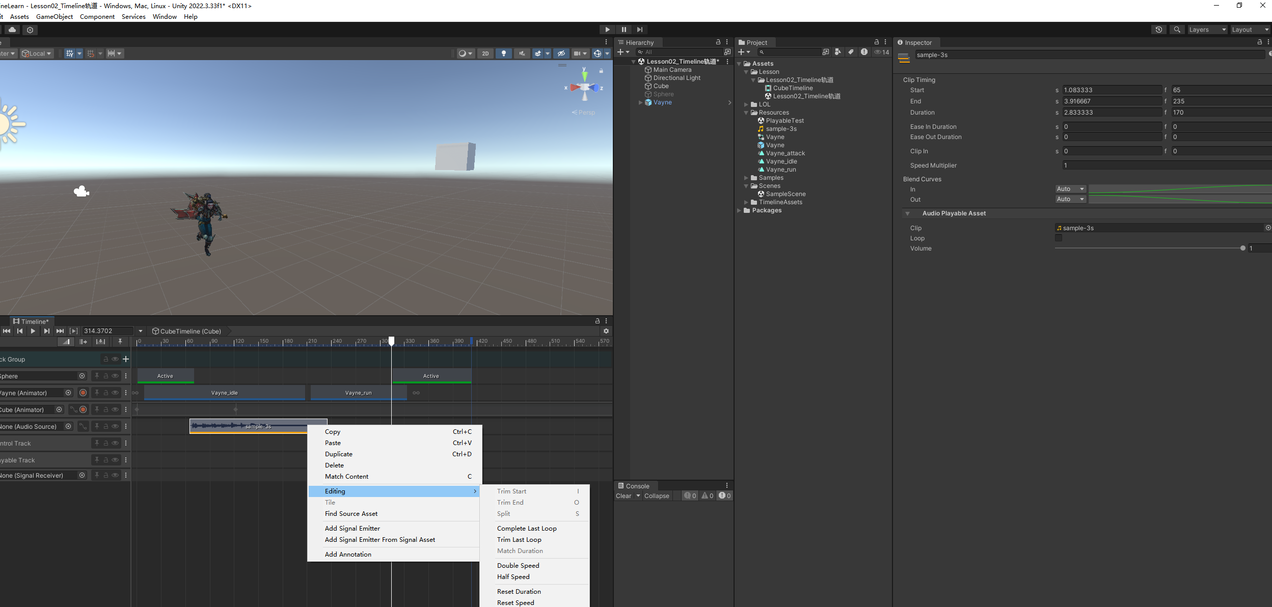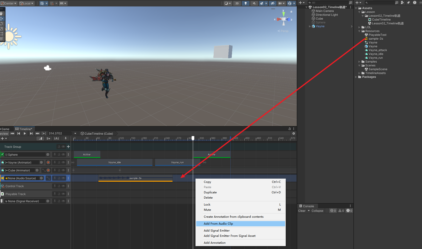 AudioClip拖进时间轴 - 或者在轨道上右键: