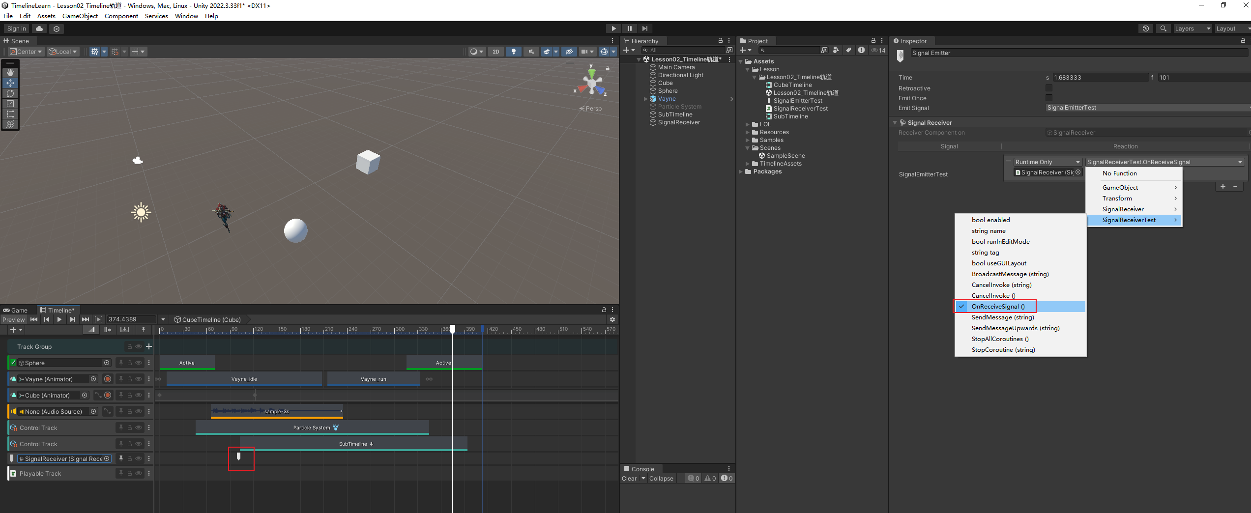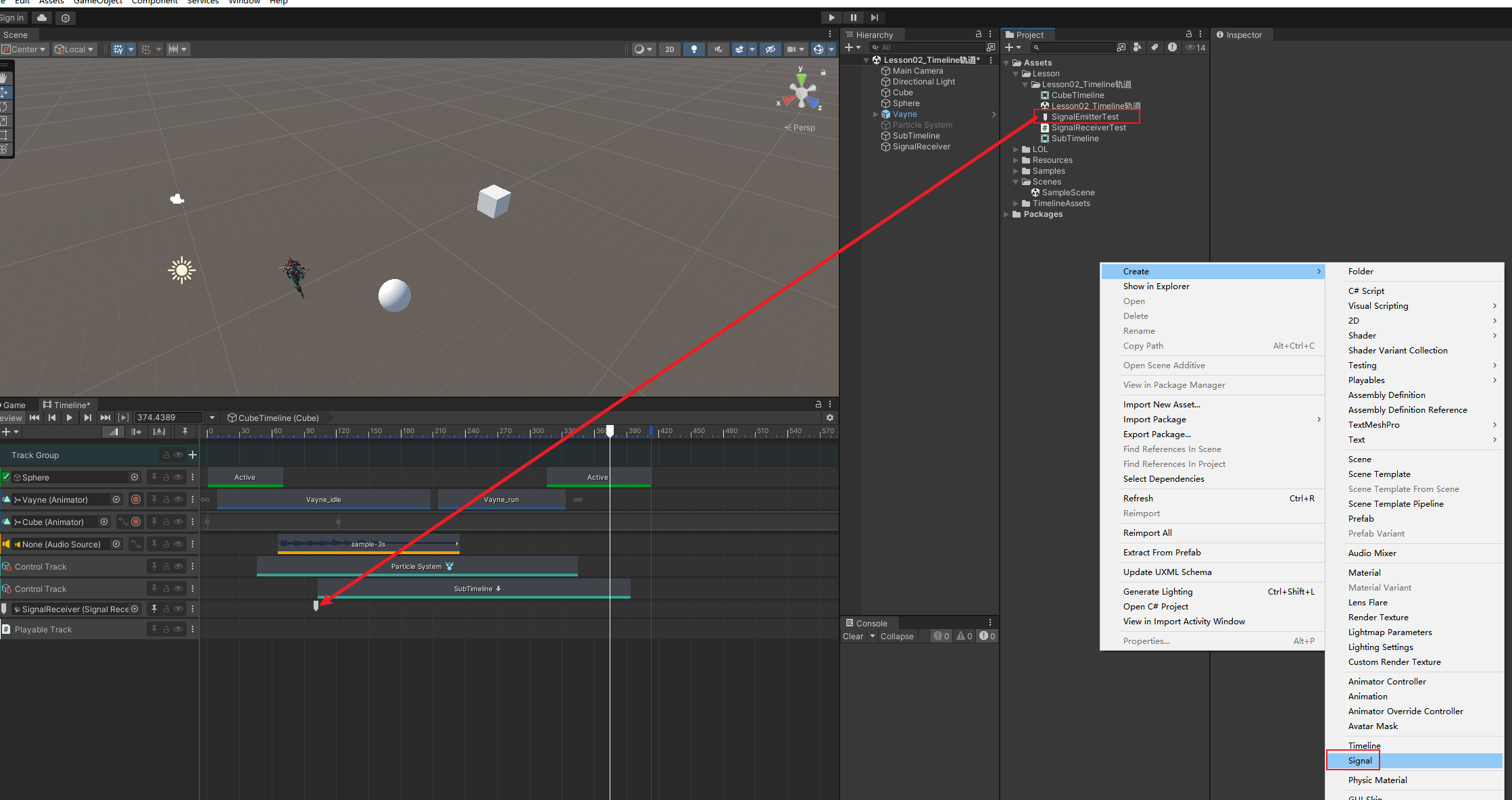 Timeline 左侧轨道区右键(或点左上角 +)会弹出添加菜单,常用轨道基本都在这里。