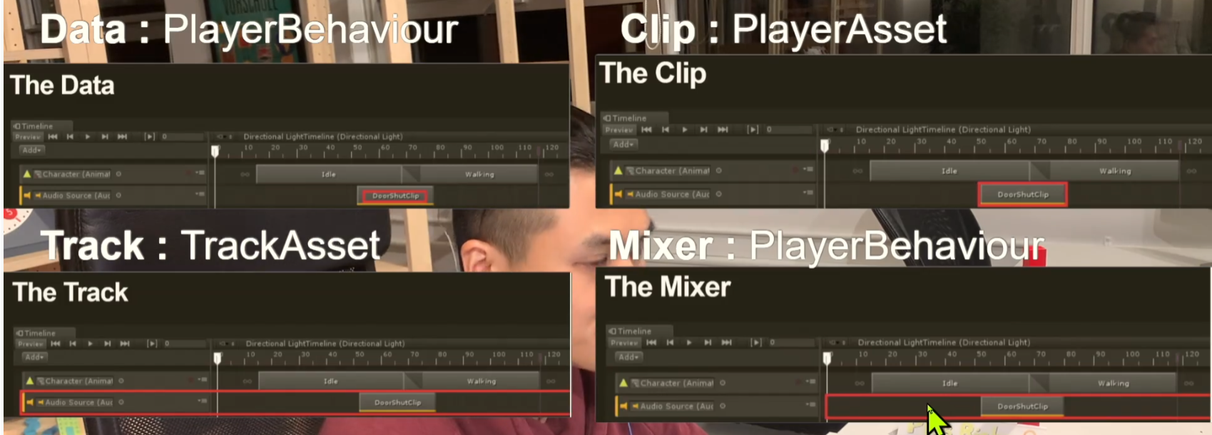Audio Track 绑定的是 AudioSource,时间轴里放的是音频片段(Audio Clip)。