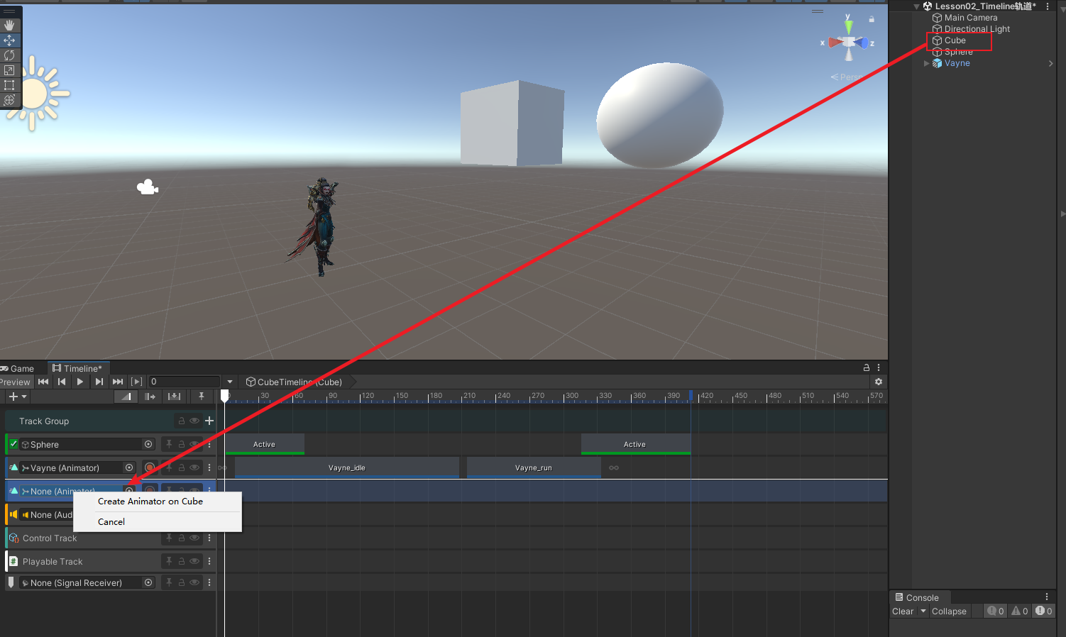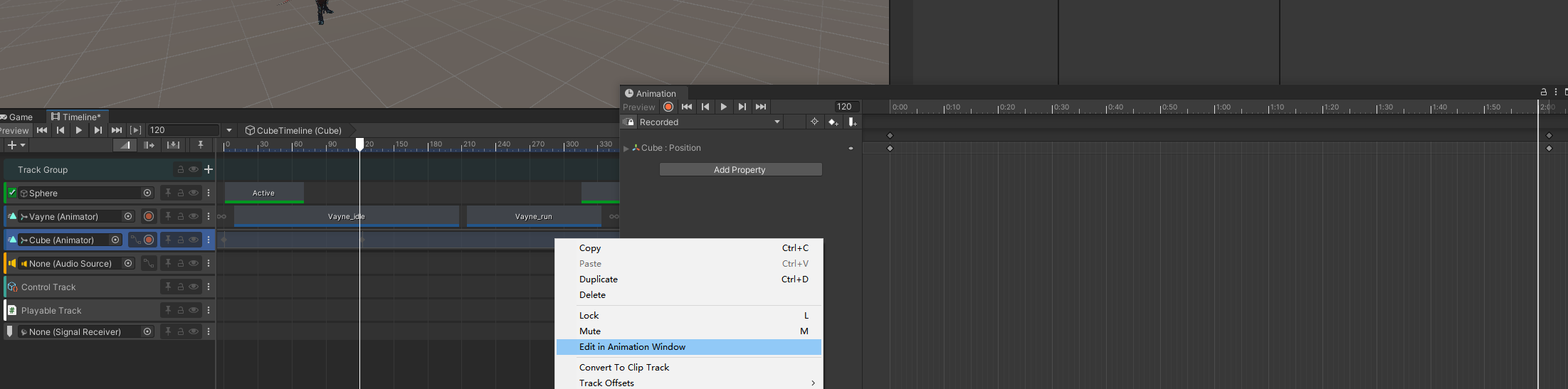 Animation Track 绑定的是 Animator,用来播动画(拖 AnimationClip)或者直接录关键帧。