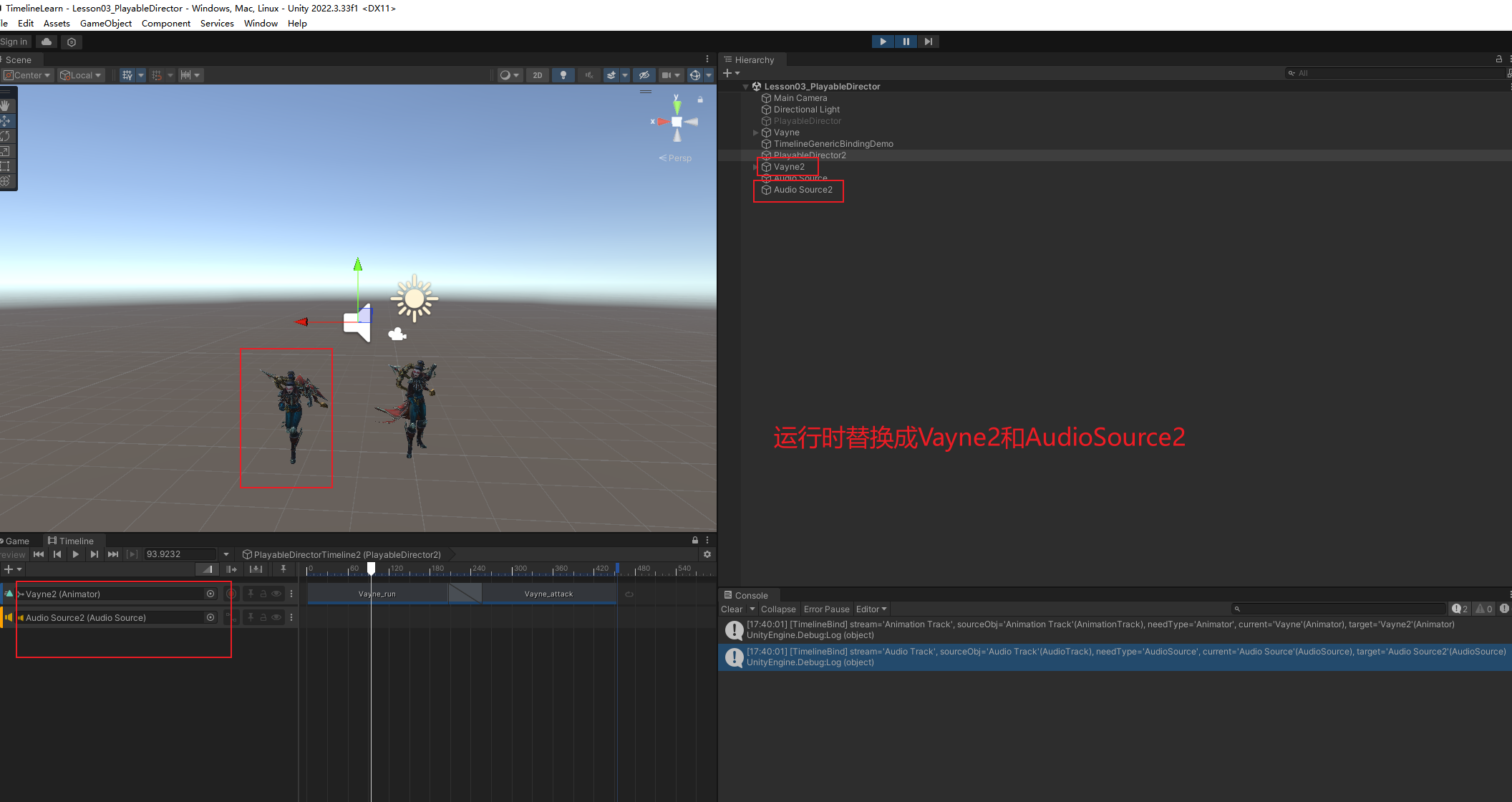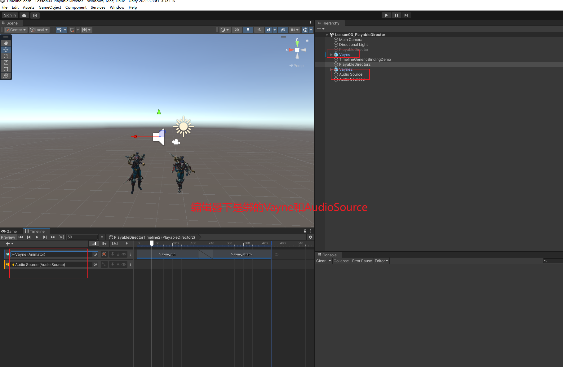 Animator,Audio Track 绑AudioSource)。 - 这里填的是场景对象;运行时也能用