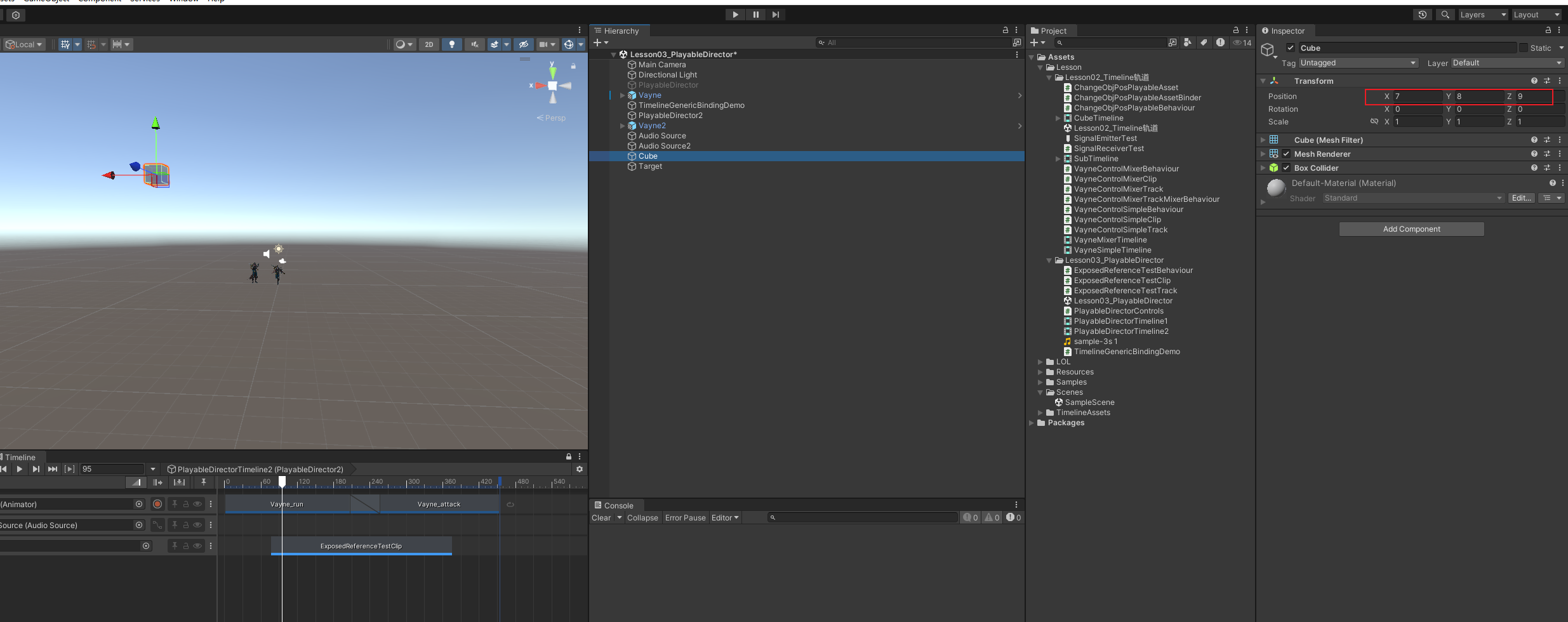 - 场景绑定(Binding):把 Track/ExposedReference 需要的对象,绑定到场景实例上